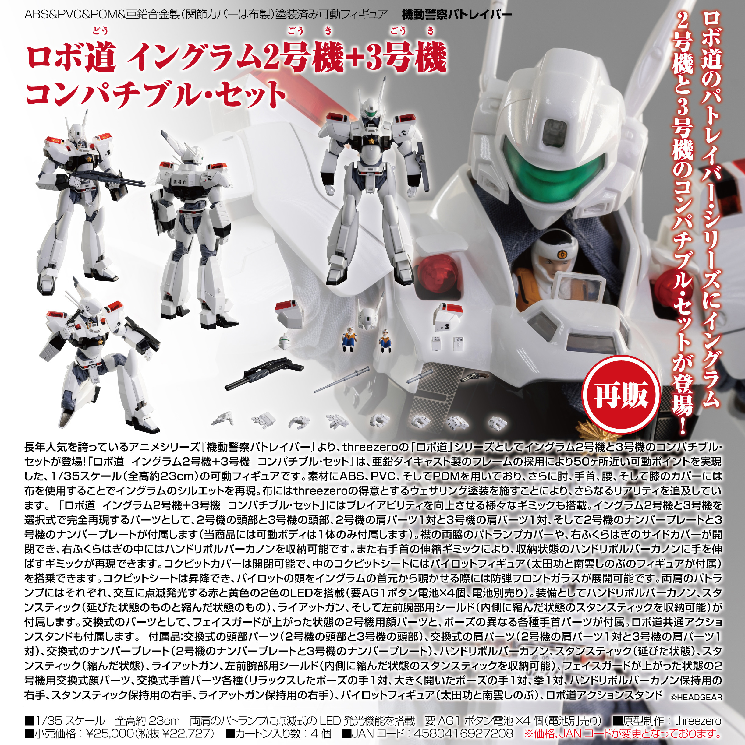 - フィギュア > コミック・アニメ > <未開封>ロボ道 イングラム1号機 & イングラム2号機+3号機コンパチブル 機動警察パトレイバー_ロボ道 イングラム2号機+3号機 コンパチブル