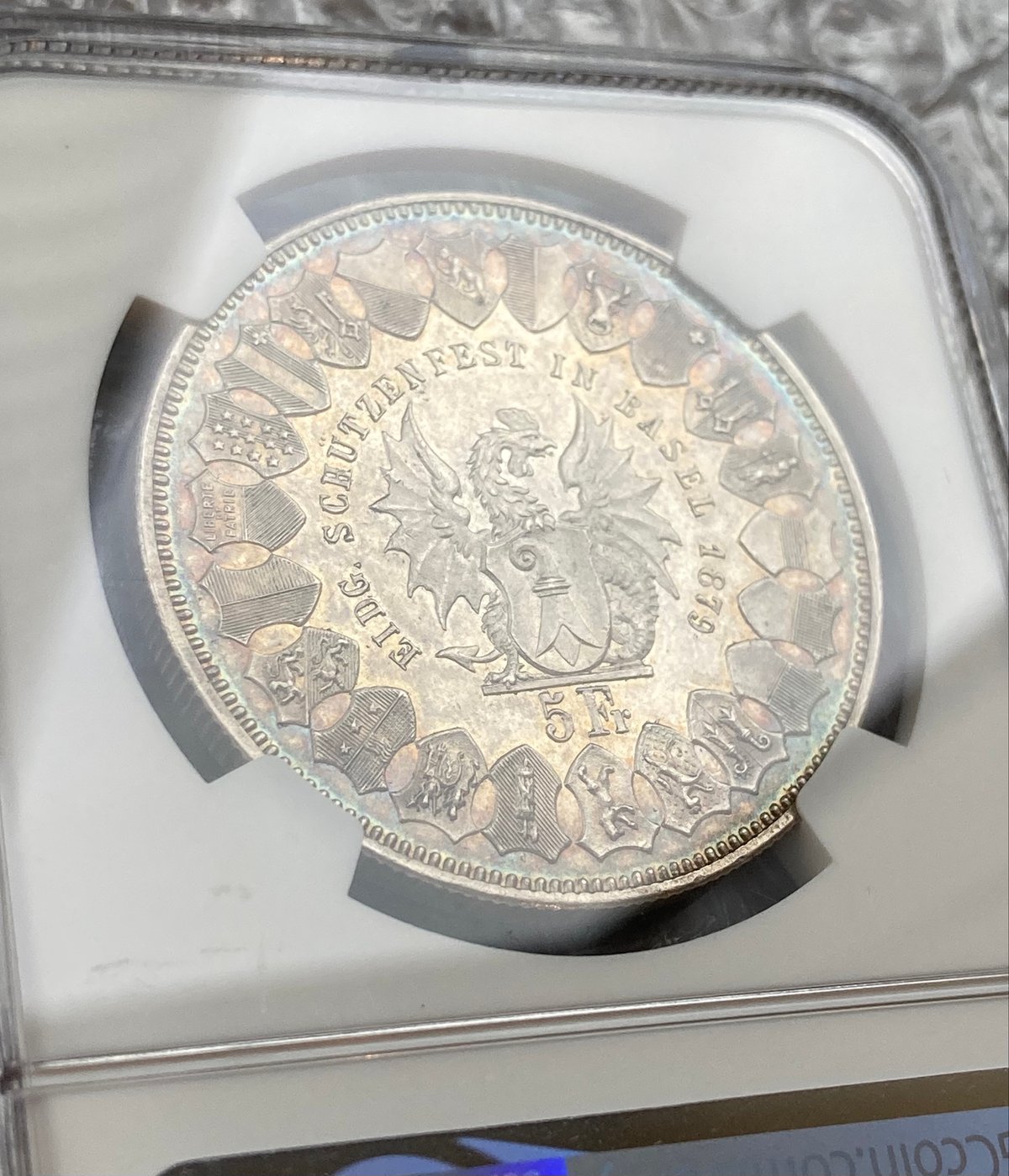 - 美術品・アンティーク・コレクション > コレクション > 銀製 1844年 スイス バーゼル射撃祭記念 外国 NGC鑑定MS63・レインボートーンあり】1879年 スイス バーゼル 射撃祭 5
